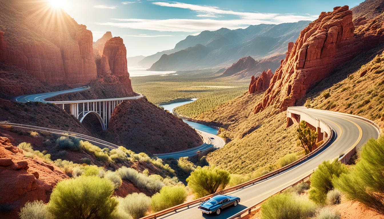 Start a captivating Southwest road trip and see the region’s stunning beauty. You’ll find red rock formations in Arizona and vast desert landscapes in New Mexico. These scenic byways show off the area’s rich culture and beautiful views.
