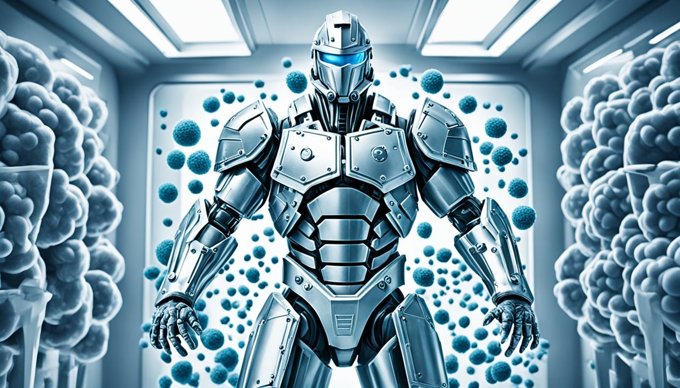 Understanding how the immune system works helps us keep it strong. It has different cell types and proteins that work together to fight threats. White blood cells and the lymphatic system are key in this fight.
