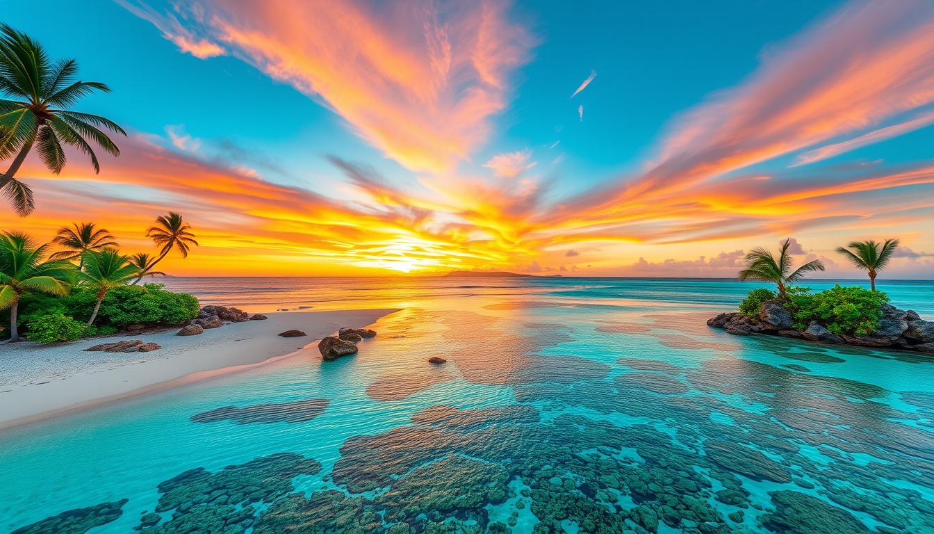 These islands are a mix of sun-kissed Caribbean beaches and lush Pacific landscapes. They offer a chance to see the best of nature. Whether you love vibrant cultures or quiet retreats, tropical islands have something for everyone.