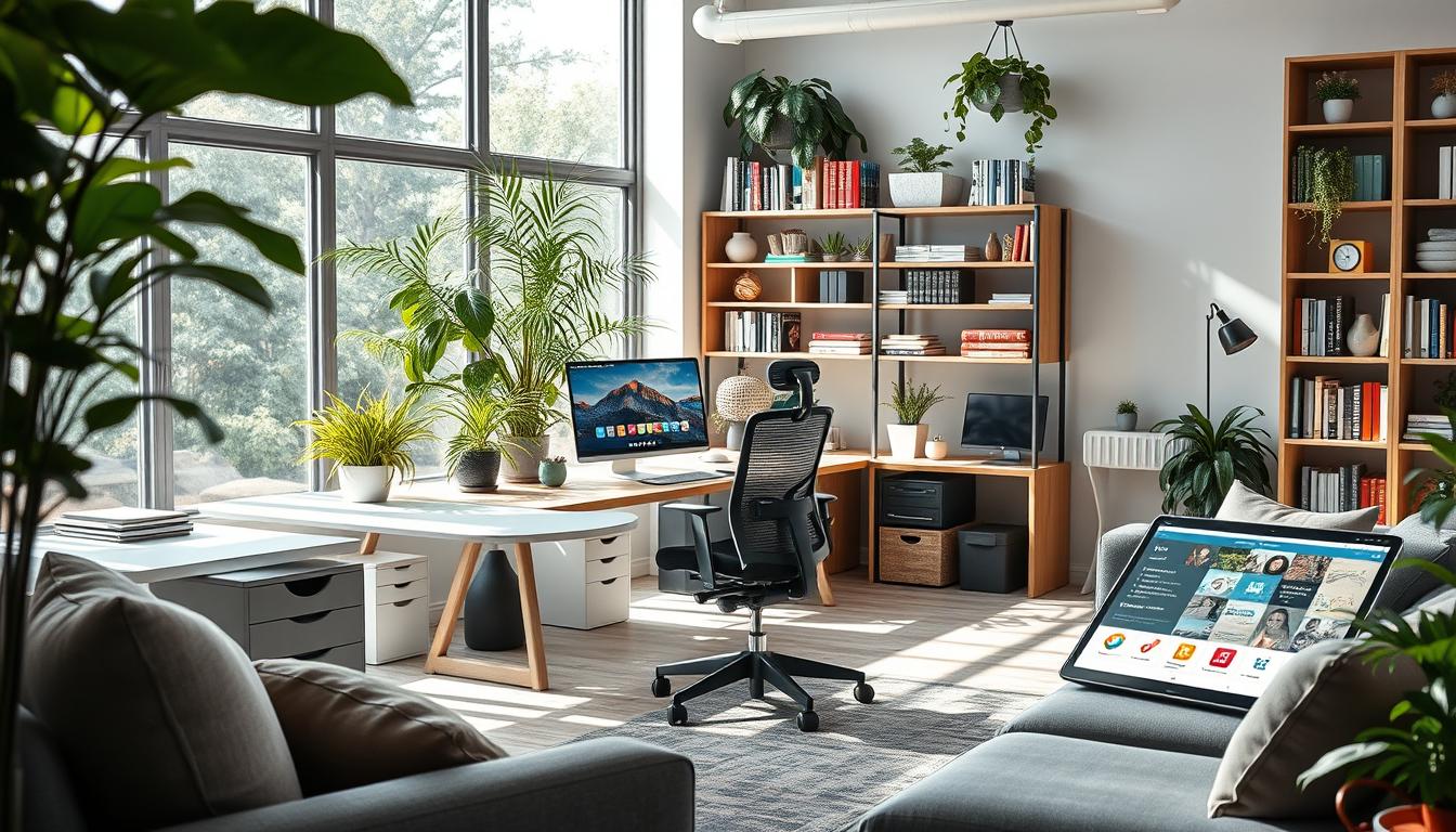 In today’s fast-paced work world, having a productive and comfy workspace is key. This guide will show you how to make your office better. We’ll talk about decluttering, choosing the right furniture, using smart tech, and managing your time well.