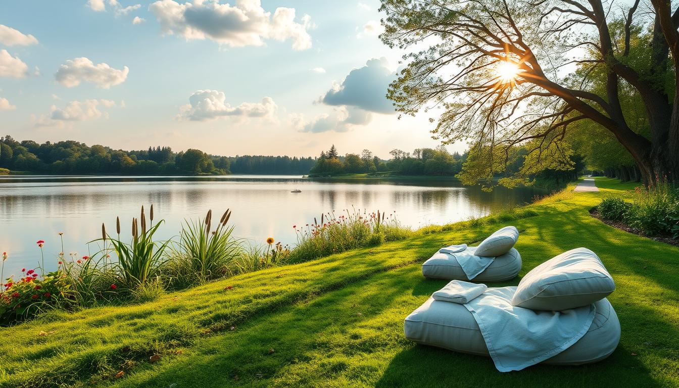 Nature’s calming effect is key. Being around green spaces lowers stress hormones and heart rate. Nature walks and outdoor activities boost mood and well-being.