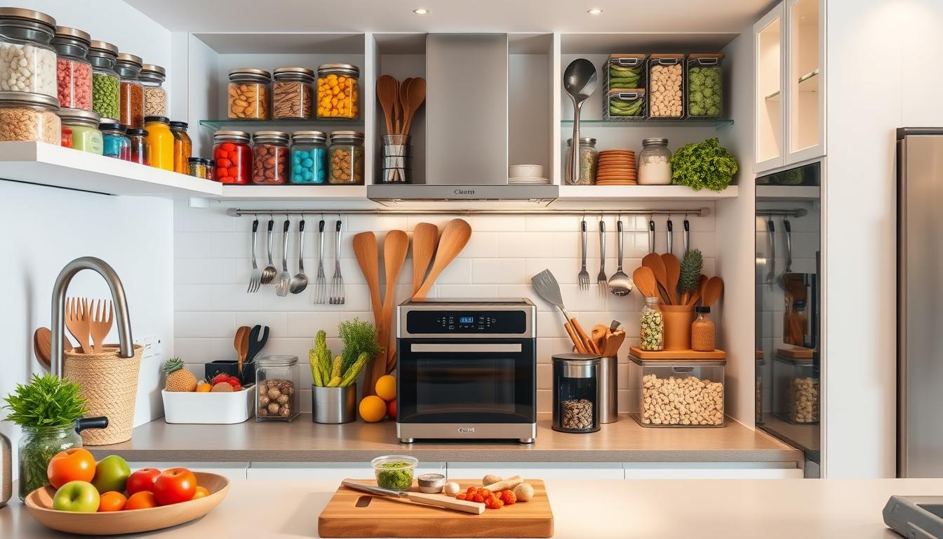 A well-organized kitchen makes cooking easier and more fun. With the right smart kitchen tools, you can make your kitchen more efficient. Smart organization tips help save time and reduce waste.